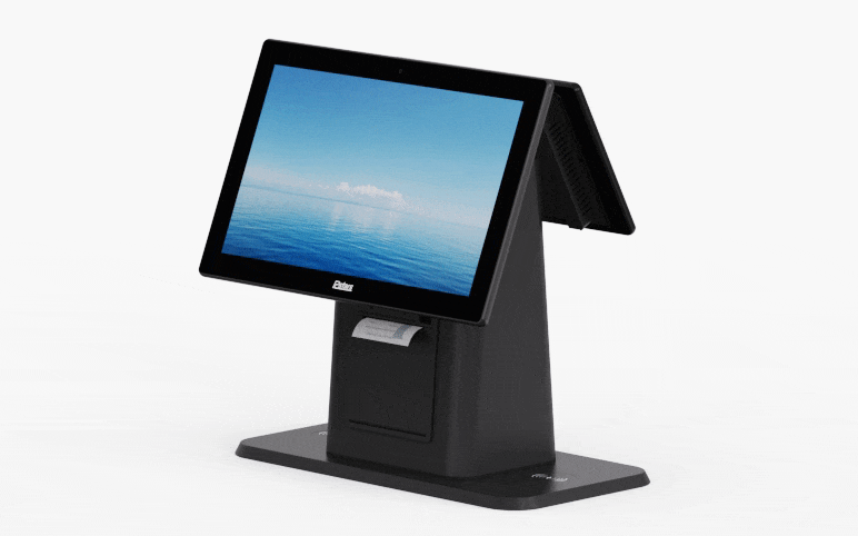 All-in-one system, Double-sided screen, the large and small screen with the presentation; aluminum alloy body, simple atmosphere, durable; built-in dual-core processor, stable operation; external USB interface, can be connected to the code gun and other auxiliary equipment, convenient and practical, is a good helper for promotion and cash register.